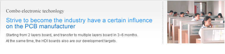 | Starting from 2 layers board, and transfer to multiple layers board in 3~6 months. At the same time, the HDI boards also are our development targets. To manufacture professional production of above 6 layers’ multiple layers boards and HDI product; To achieve total customer satisfaction through the provision of quality service, competitive price and on time delivery; To become the leading manufacturer through the modern management, and innovative approach of our people as well as the support from our customers and suppliers. |